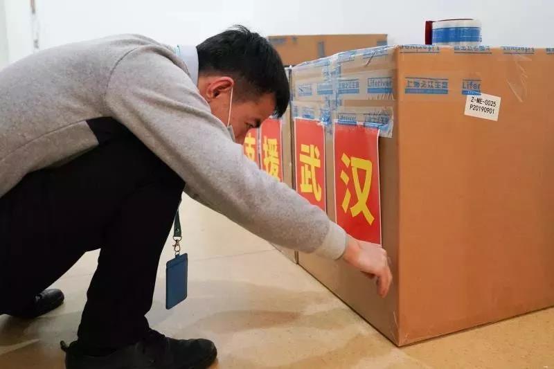 試劑盒生產商在箱子上貼上“支援武漢”字樣,圖源:上觀新聞