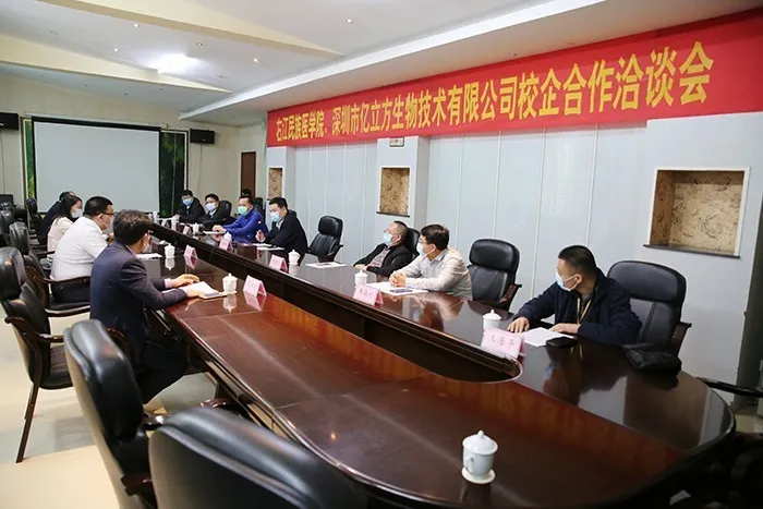 鄶斌總監對學院的熱情接待表示感謝。他從技術研發、產品構架、市場開拓、發展成果等方面詳細介紹了我司。他表示我司多年在體外診斷試劑方面精耕細作,現已擁有眾多“明星”產品,具有豐厚的科研成果轉化與應用經驗。此次與學院合作,增進彼此友誼,助力學院成果轉化,同時推動公司發展及開拓廣西市場,促進百色市健康產業發展。
