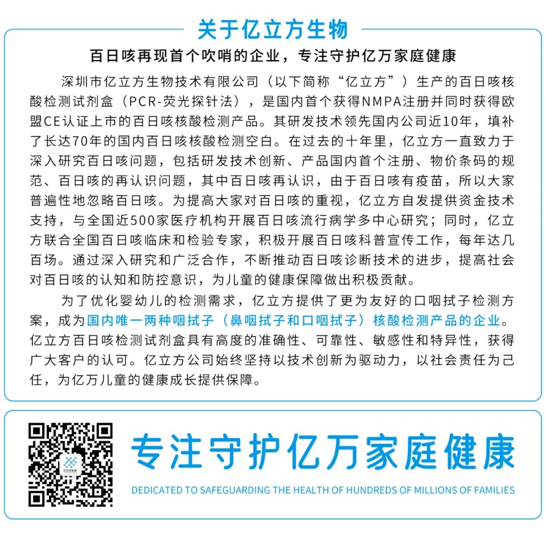 江西省兒童醫院的柯江維教授作為百日咳多中心研究全國組長單位對百日咳階段研究成果《中國百日咳實驗室檢測及質量管理專家共識解讀》進行了深入的介紹,為百日咳實驗檢測提供了高質量的管理策略。本研究是根據中婦幼便函[2021]284號文件精神,面對百日咳再現這一挑戰,為進一步完善、規范和解決百日咳患者臨床實驗診斷中的難點問題,提高醫療保障機構實驗室診斷能力,保障生命健康。億立方作為唯一支持單位。